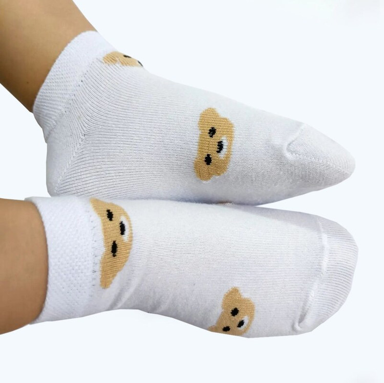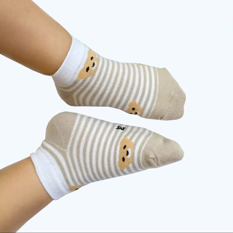 پک 6 جفتی جوراب ساق کوتاه بچگانه پسرانه دخترانه ی مدل خرسی تدی سفید نسکافه ای