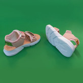 این کفش تابستانی دخترانه ی زیبا مدل صندل جلو باز خنک رنگین کمانی میباشد که با رنگ های سبز ، گلبهی نارنجی (صورتی) ، بنفش و سفید (شیری) کاری با کیفیت ، سبک و با زیره ی PU نرم و با کیفیت میباشد که انعطاف و تاشوندگی آن را در بین تصاویر ملاحظه میفرمایید. پوشیدن این کفش استاندارد از همه لحاظ متریال ، وزن , ساخت و ... موجب احساس راحتی و نشاط کودکان عزیزمان هنگام راه رفتن و دویدن در فصول گرم سال خواهد بود. قالب کفش نیز استاندارد بوده و هنگام سفارش به جدول سایزبندی در تصاویر توجه فرمایید.