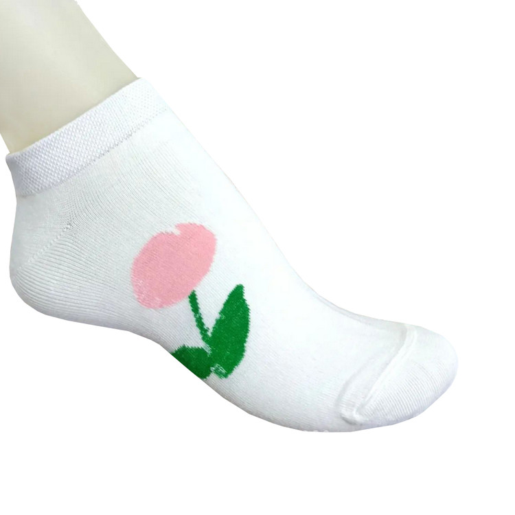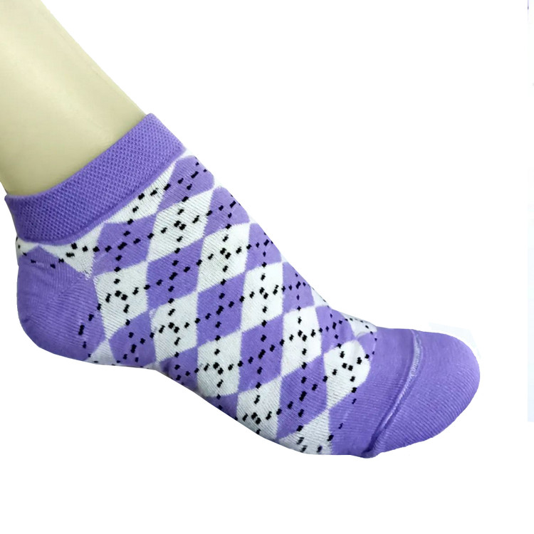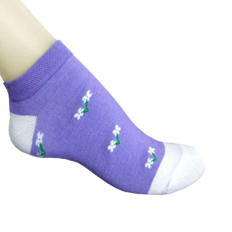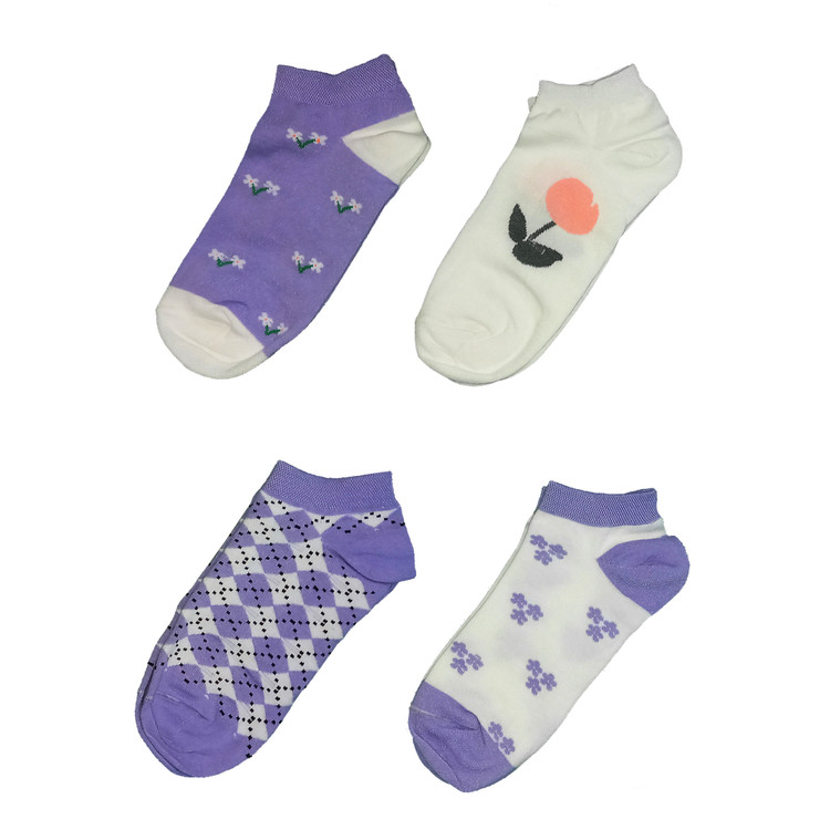 جوراب زنانه ی ساق کوتاه مدل بابونه گل دار باربری بنفش یاسی نخی بسته ی 4 جفتی