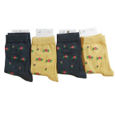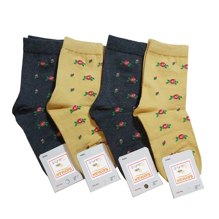 جوراب زنانه ی ساق بلند مدل قزل گول ( گل رز سرخ ) نخی بسته ی 4 جفتی با رنگ های کاربردی کد 02