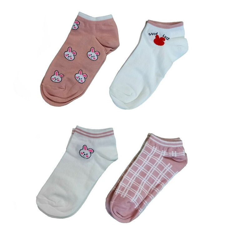 جوراب زنانه چهار نوع طرح دار خرگوشی کالباسی و سفید در پک 4 عددی میباشد. فری سایز بوده و برای پاهای شماره ی 37 تا 41 مناسب میباشد. در تولید این جوراب از نخ باکیفیت (ریز بافت با تراکم بالا) استفاده شده است و روسو پنجه گیری انجام شده که یعنی سرپنجه و پاها اذیت نخواهد شد و موجب راحتی پا خواهد بود.