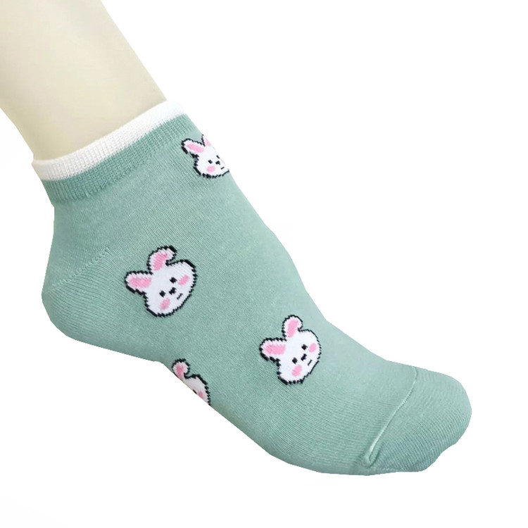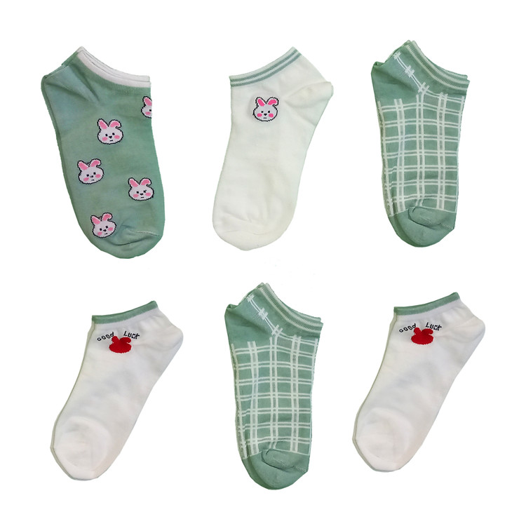 پک 6 عددی جوراب ساق کوتاه زنانه مدل مچی چهار طرح خرگوشی سفید و سبز