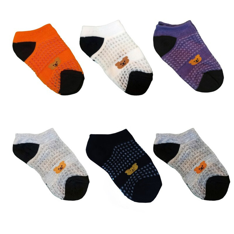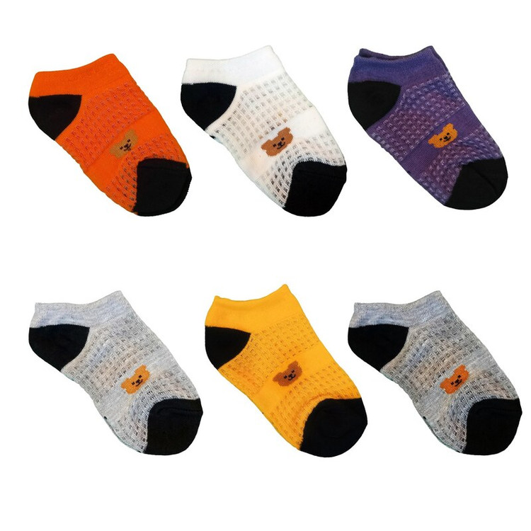 جوراب ساق کوتاه بچگانه 1 تا 4 سال مدل نخی شیشه ای خرسی تدی بسته 6 عددی