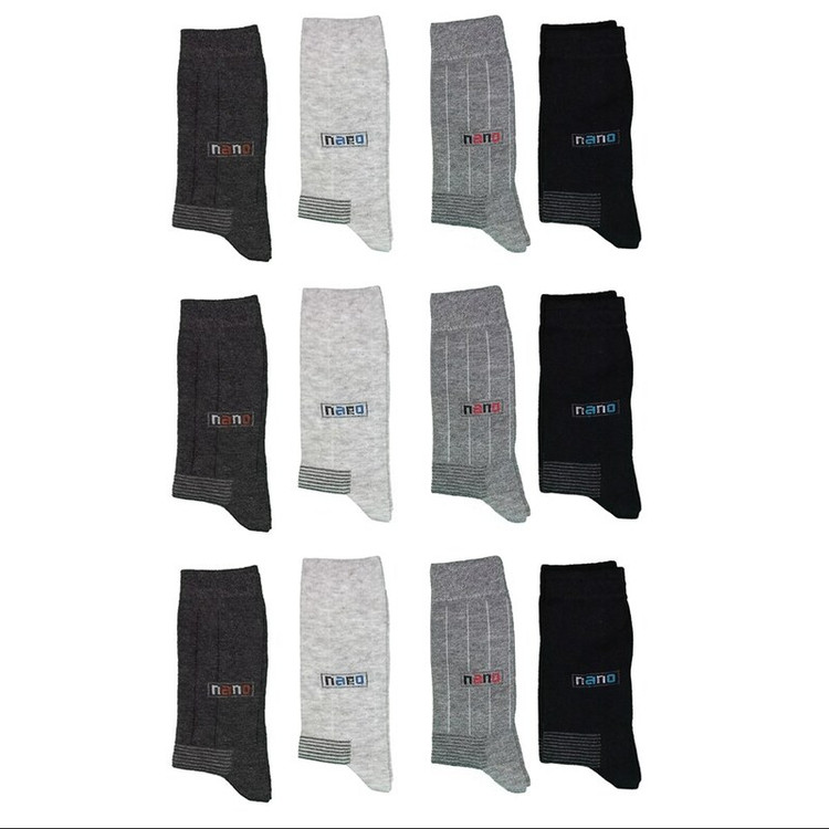 این جوراب مدل ساق دار و مناسب آقایان به صورت چند رنگ میباشد که این محصول در بسته ی 12 تایی با ترکیب چند طرح و رنگ های موجود در تصویر خدمت شما عرضه می شود. اندازه ی جوراب فری سایز بوده و برای پاهای شماره ی 40 تا 44 مناسب میباشد. در تولید این جوراب از نخ باکیفیت (ریز بافت با تراکم بالا) استفاده شده است، نانو و آنتی باکتریال (ضدحساسیت) میباشد. سرپنجه و پاها اذیت نخواهد شد و موجب راحتی پا خواهد بود.