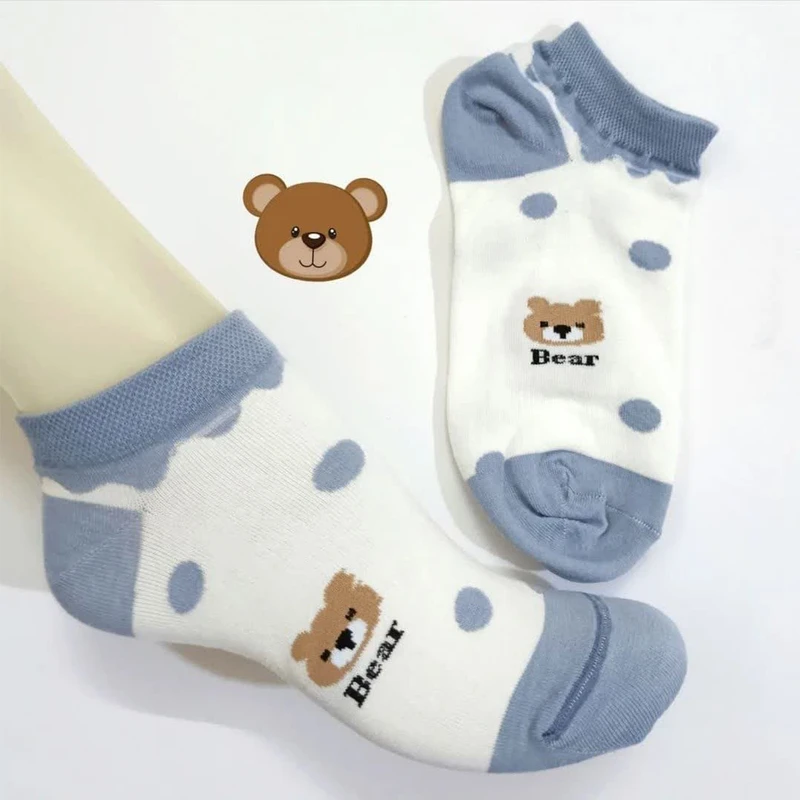 جوراب ساق کوتاه بچگانه ی 2 تا 11 سال مدل خرس دار تدی آبی مایل به طوسی بسته 6 جفتی
