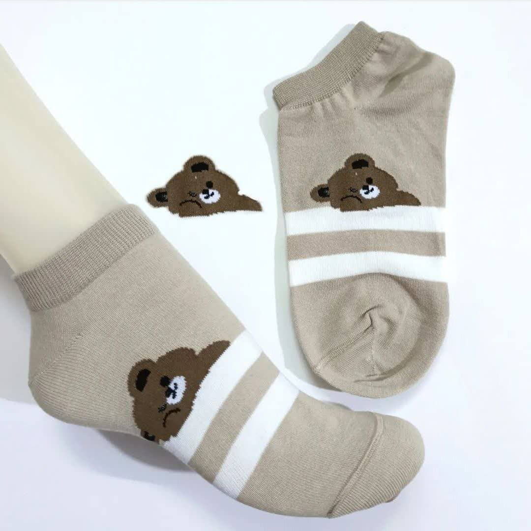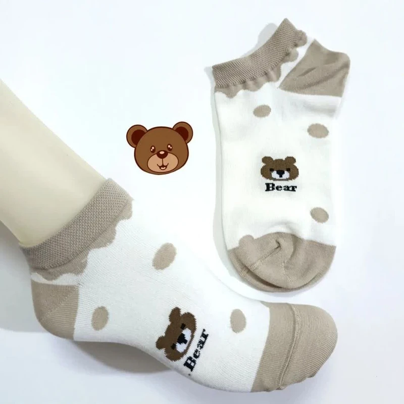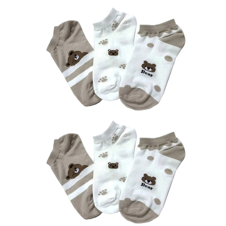 جوراب ساق کوتاه بچگانه ی 2 تا 11 سال مدل خرس دار تدی قهوه ای نسکافه ای بسته 6 عددی