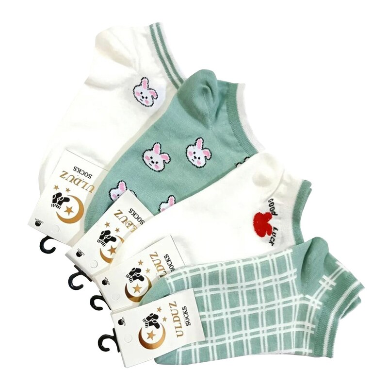 پک 4 جفتی جوراب ساق کوتاه زنانه فری سایز مدل طرح دار خرگوشی سبز و سفید کپی