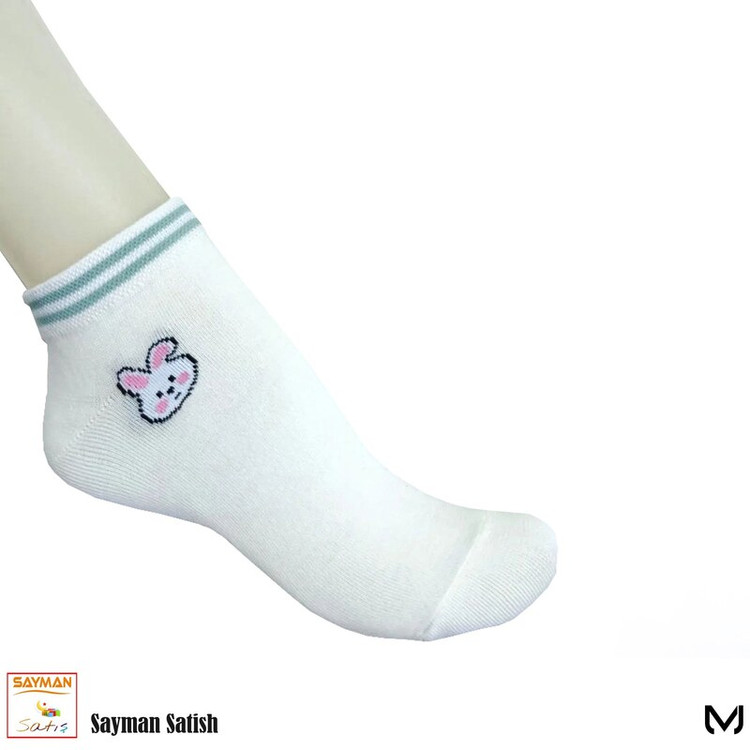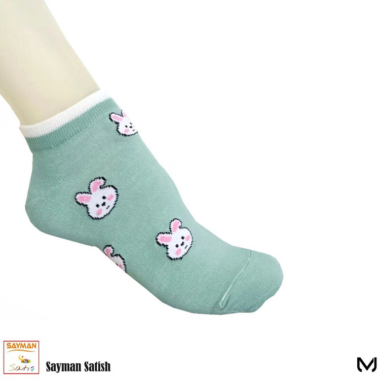 پک 4 جفتی جوراب ساق کوتاه زنانه (سایز 37 تا 41) مدل طرح دار خرگوشی سبز و سفید