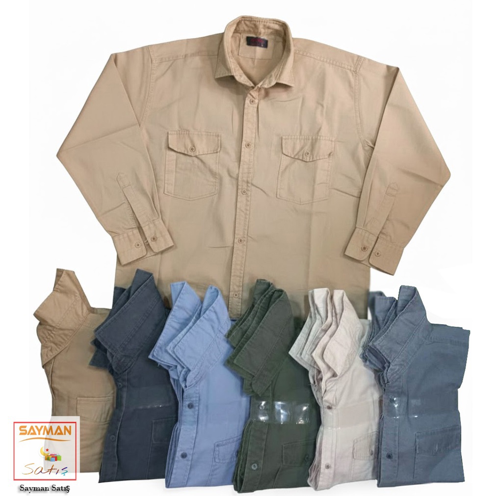 پیراهن آستین بلند کتان مردانه دو جیب رنگبندی (بدون جعبه)