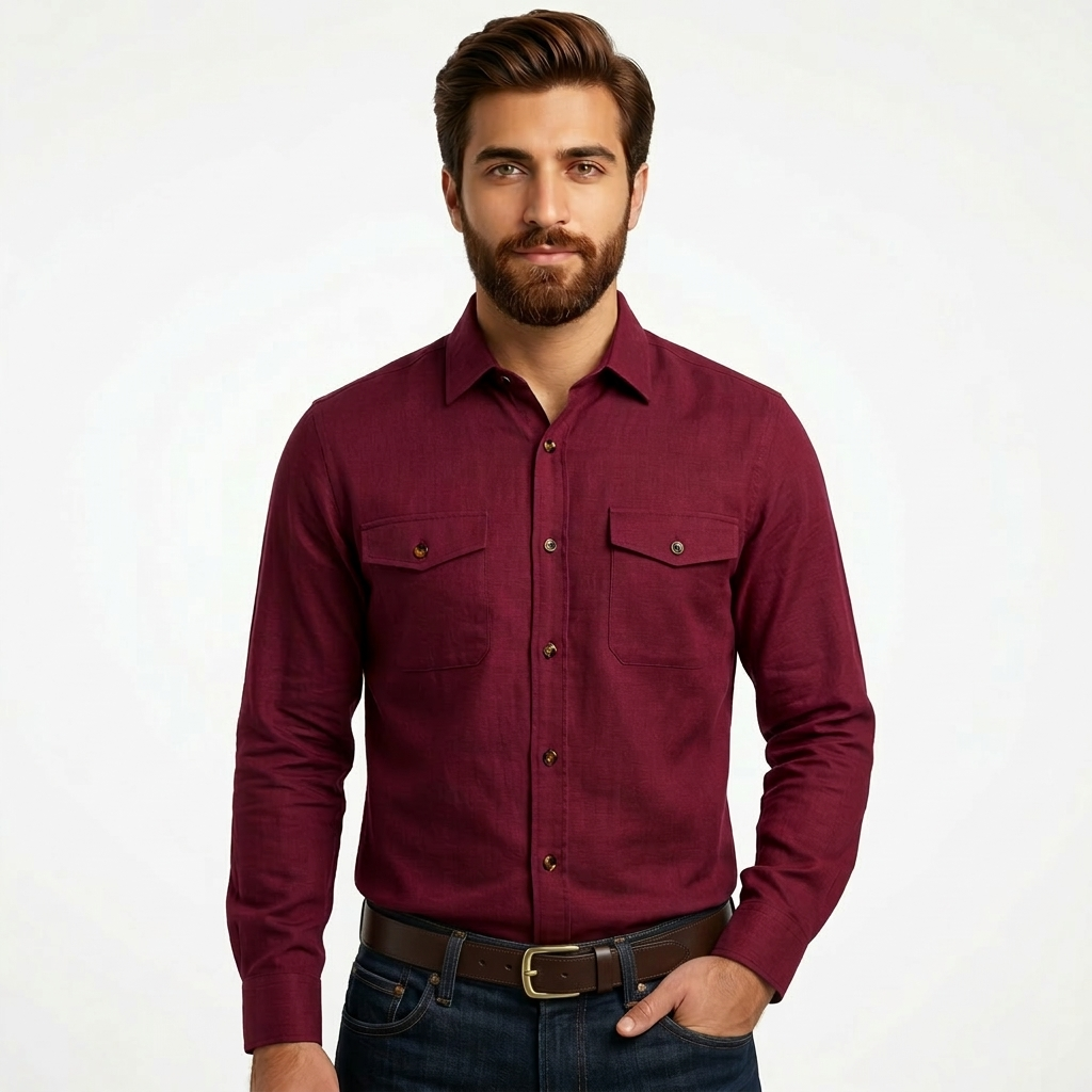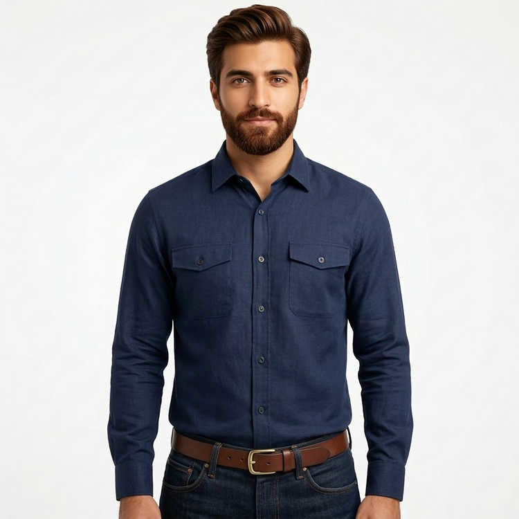 پیراهن آستین بلند کتان مردانه دو جیب رنگبندی: انتخابی برای استایل کژوال و شیک!