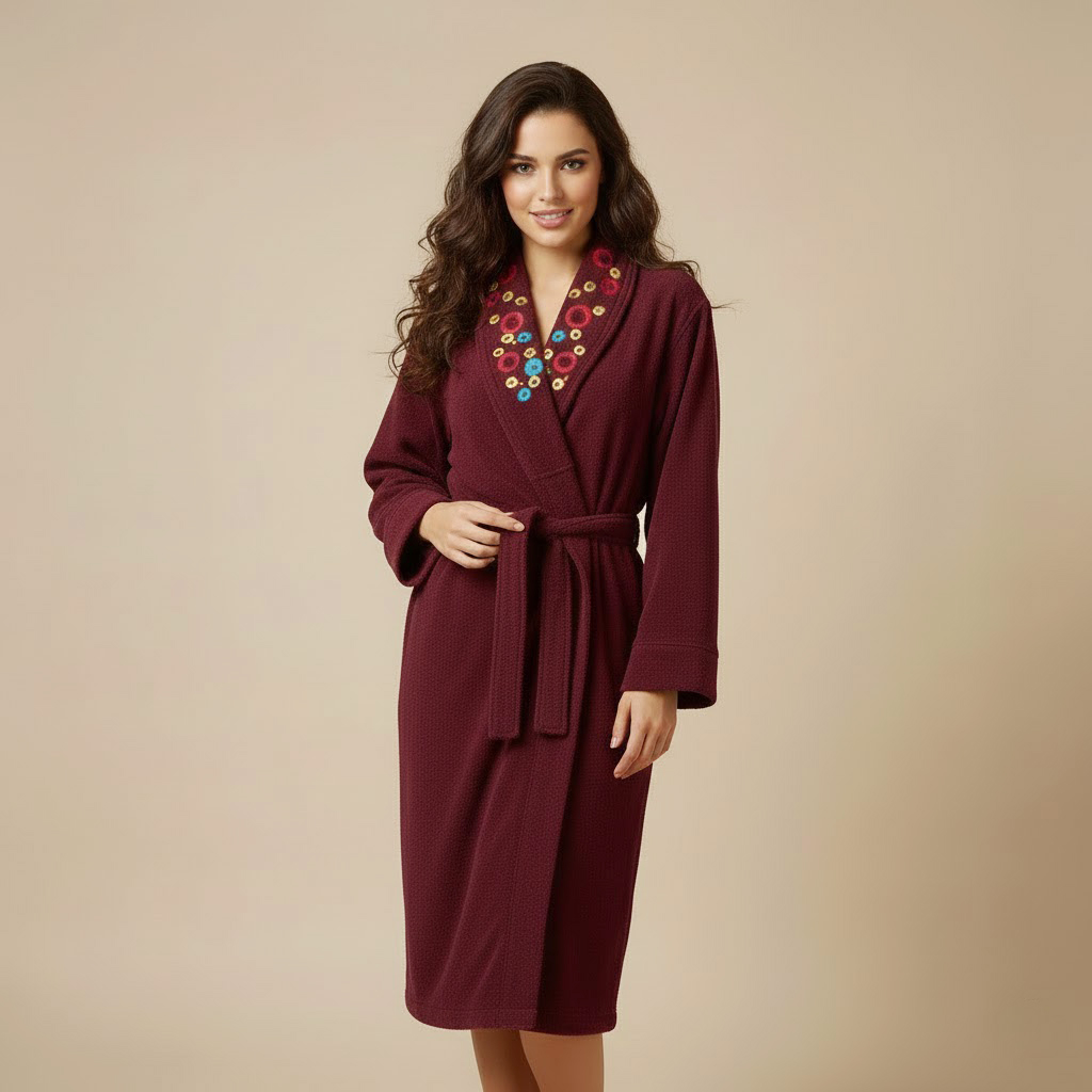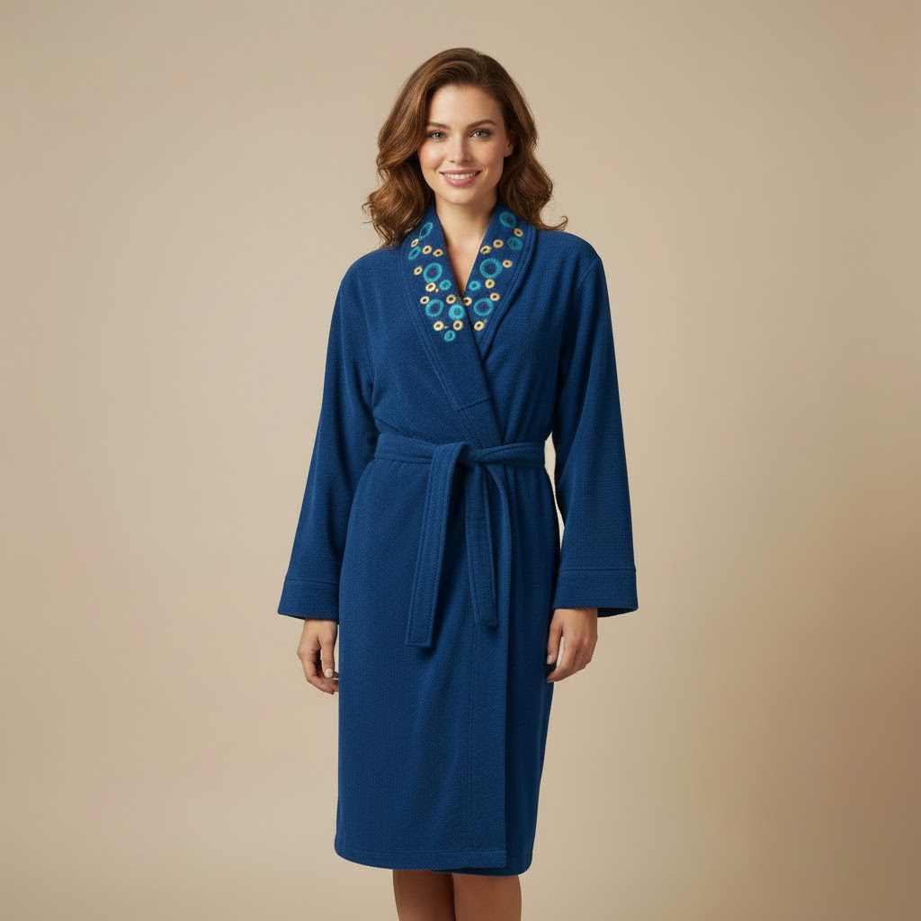 طرح یقه حبابی بوده و بدن این حوله نیز نسبت به خط تولید ممکن است ساده یا طرح هندسی کم رنگی که در برخی تصاویر این حوله هم مشخص میباشد، باشد که در هر حالت زیبایی این حوله تن پوش کاملا مشهود و برای هر نگاهی زیبا میباشد.