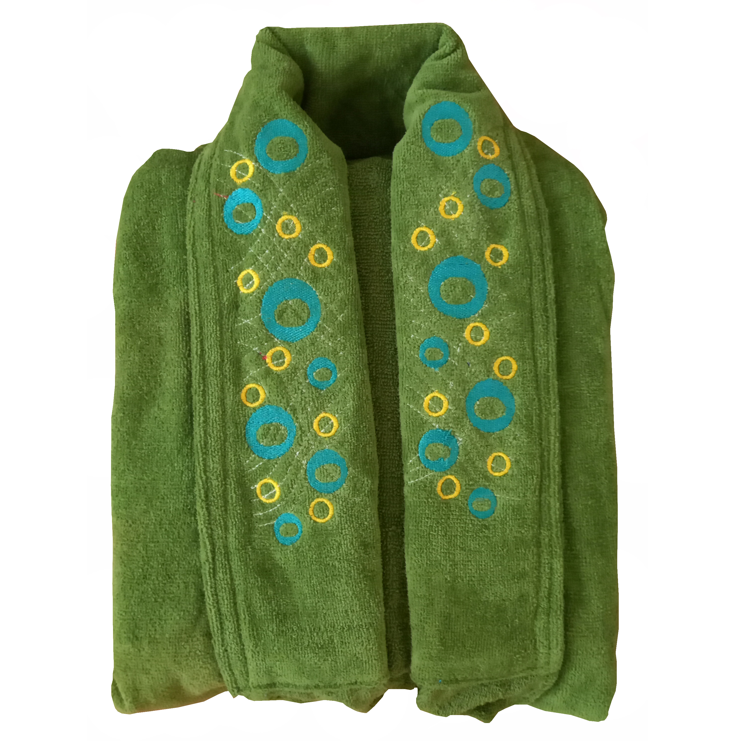 این محصول مانند لباس پوشیده شده و رطوبت موجود روی پوست را با سرعت بیشتری به خود جذب میکند. این حوله توسط یک کمربند بسته میشود.