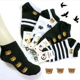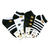 جوراب زنانه ی ساق کوتاه مدل خرسی ( تدی ) نخی سفید مشکی بسته ی 4 جفتی