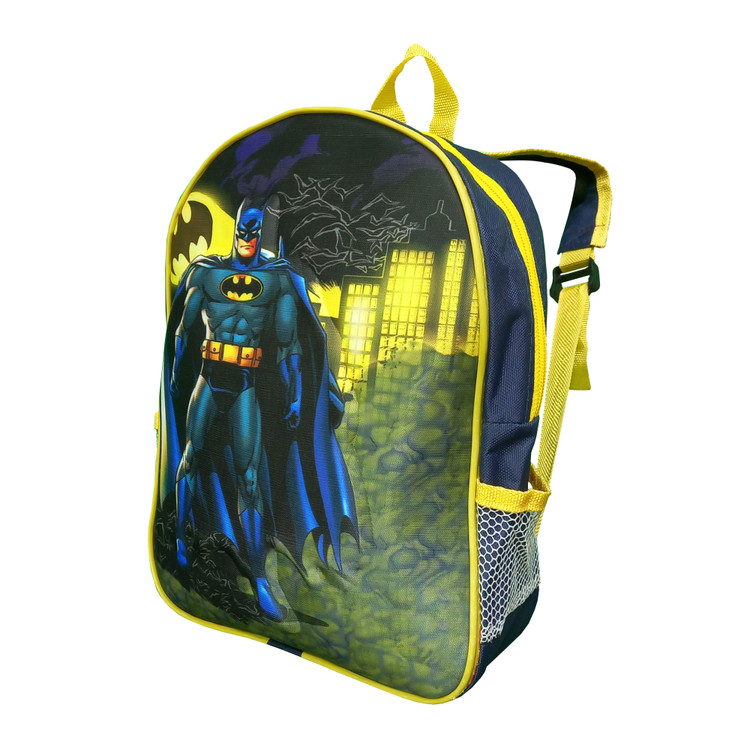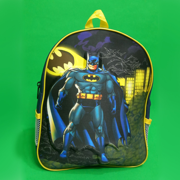 این کوله پشتی زیبا با طرح کارتونی بتمن (شوالیه ی تاریکی ها) کیفی با کیفیت با استفاده از الیاف نخی و مصنوعی مناسب بازه ی سنی زیر 10 سال برای اموراتی نظیر مهدکودک ، مدرسه ، کلاس های دیگر ، همچنین امورات بیرونی و ... میباشد. ابعاد کیف تقریبا 30 * 27 سانتی متر میباشد.