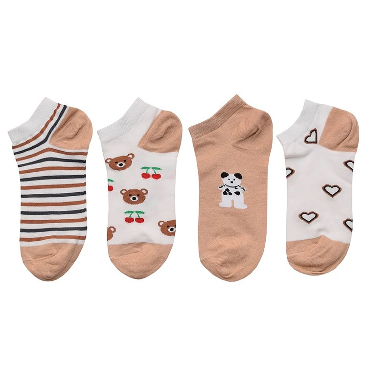 جوراب ساق کوتاه زنانه مدل تدی و آلبالو بسته 4 عددی