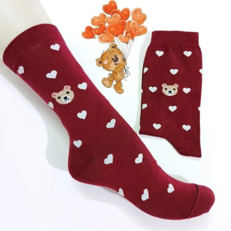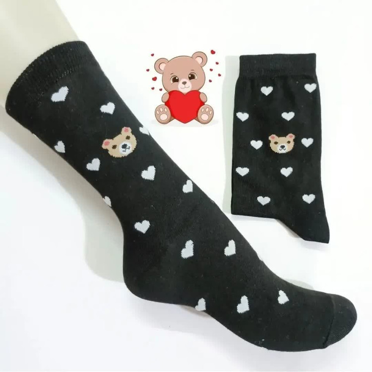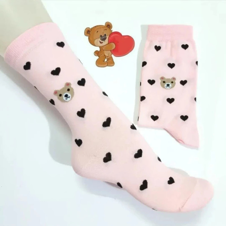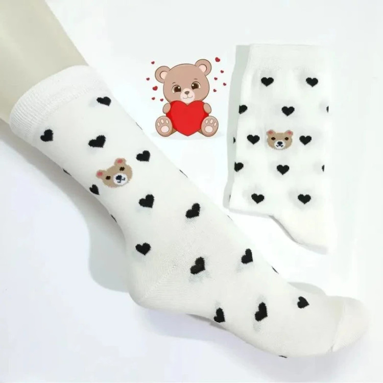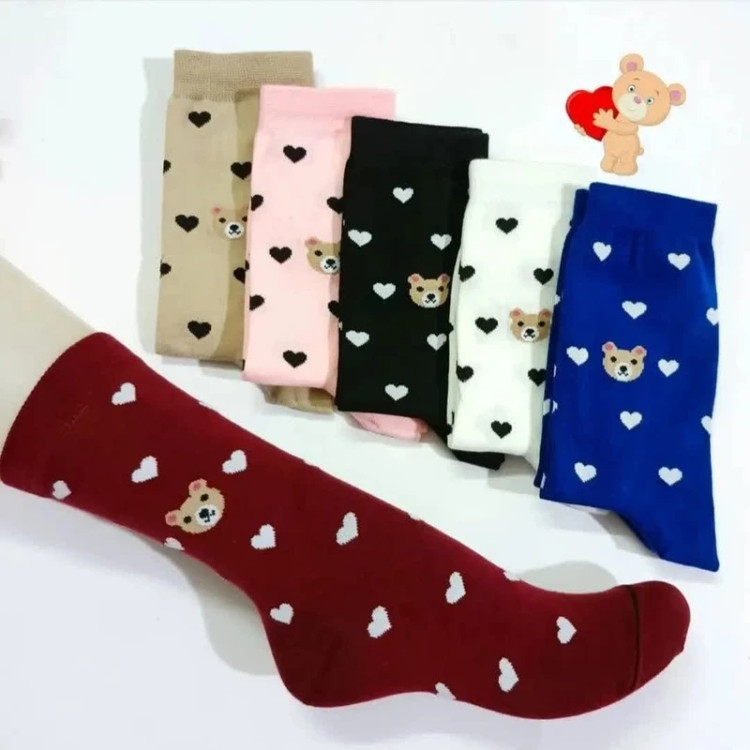 جوراب ساق بلند زنانه مدل تدی - قلبی بسته 6 عددی