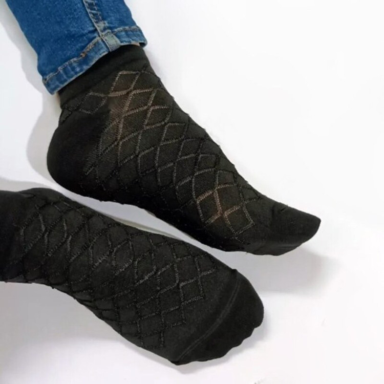 جوراب ساق کوتاه زنانه مدل شیشه ای نخی خنک بسته 6 عددی - 3 طرح